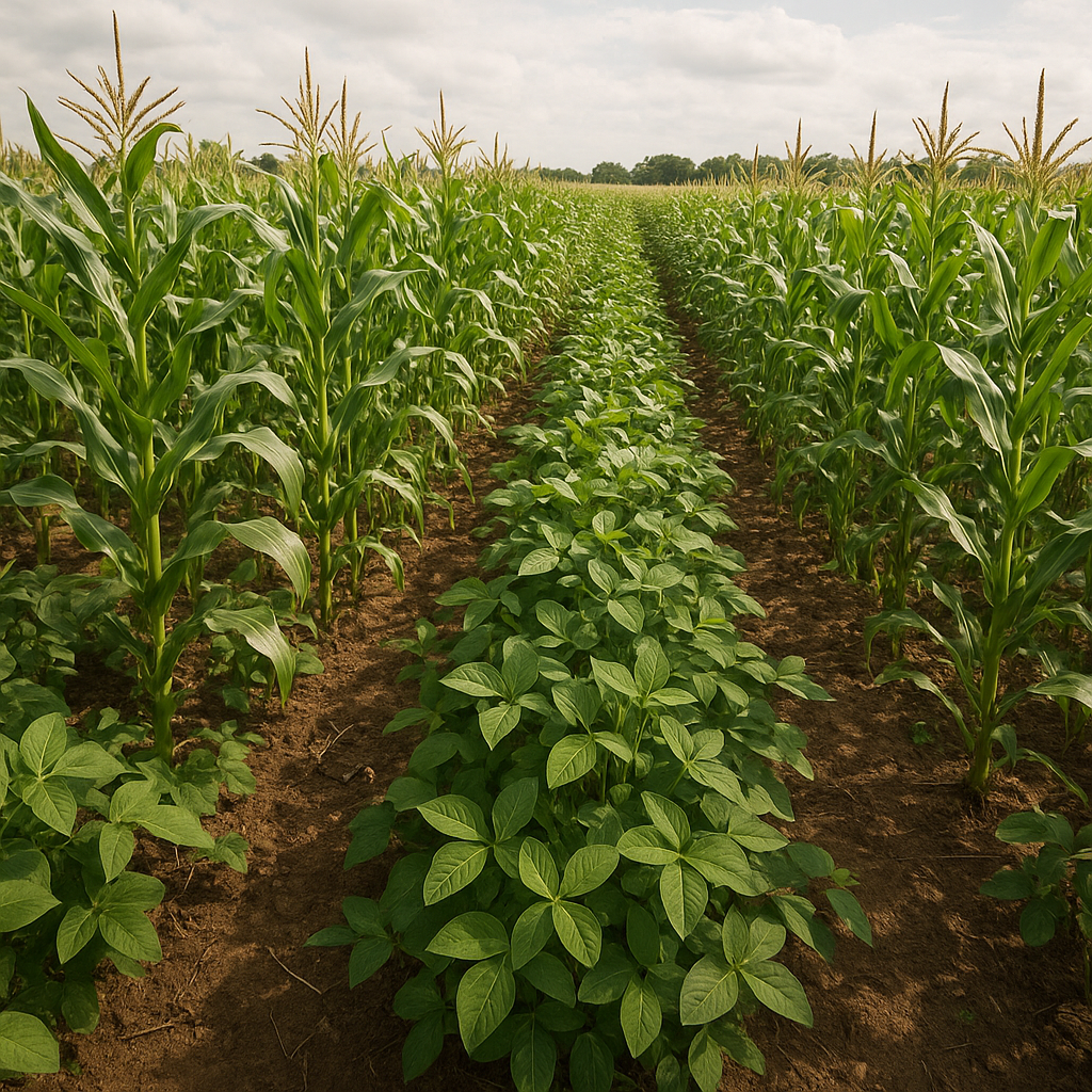 - Row intercropping: Alternating strips of two or more crops for machinery compatibility.